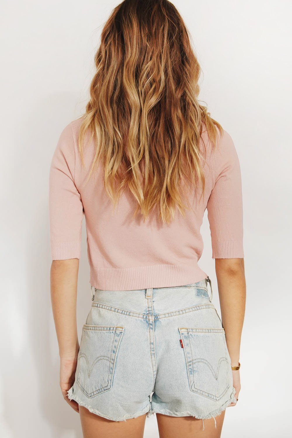 Easy weekends & road trips... Featuring centre front buttons & made from a stretch knit fabric, our Elle Button Front Knit Top will literally go with anything! Pair with vintage denim shorts & pastel mules for a femme cool look. Also available in Sky.