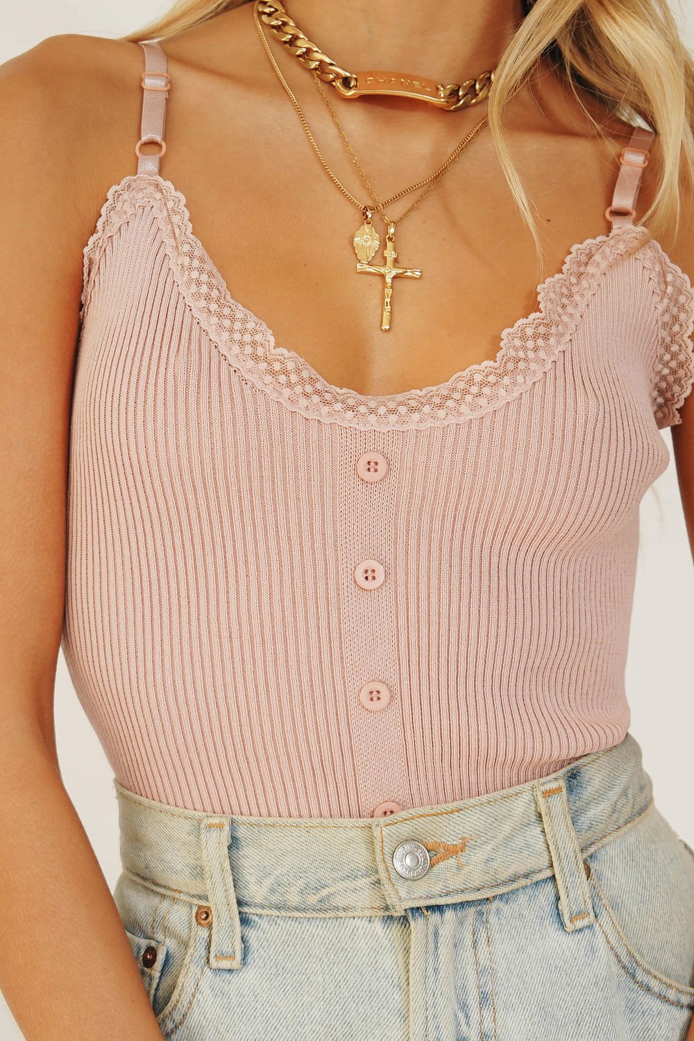 • Load image into Gallery viewer, In The Details Button Front Knit Cami // Rose