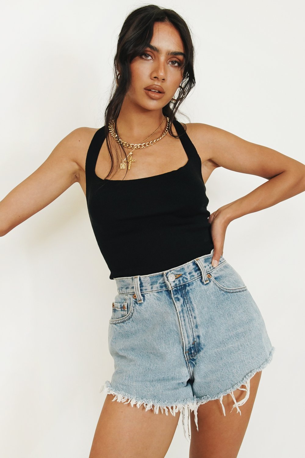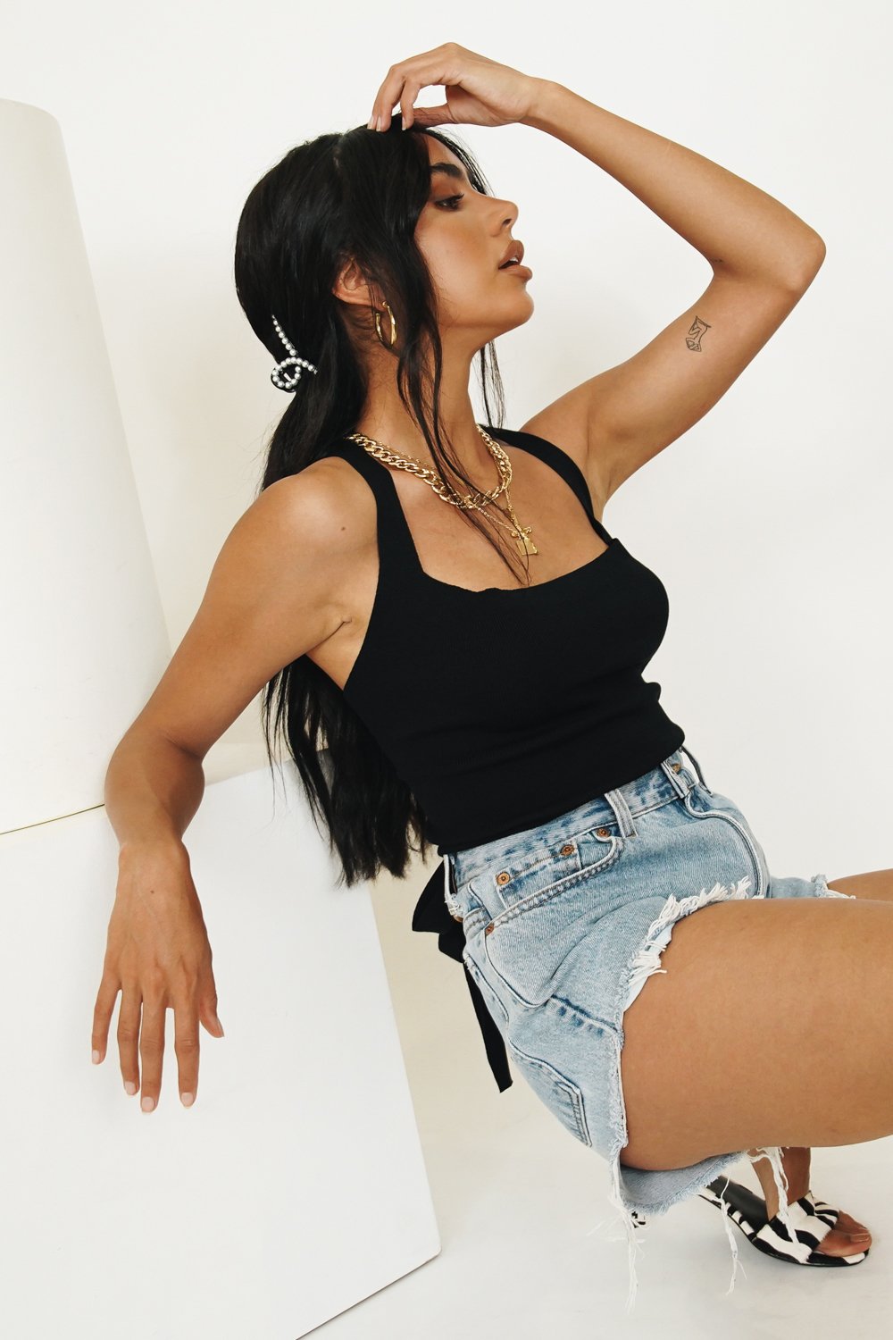 Turn heads in our Everybody Dance Top! This knit number features a tie back & is made from a soft stretch fabric. Pair with vintage denim & 90's style mules for a total cool girl vibe! Also available in White.