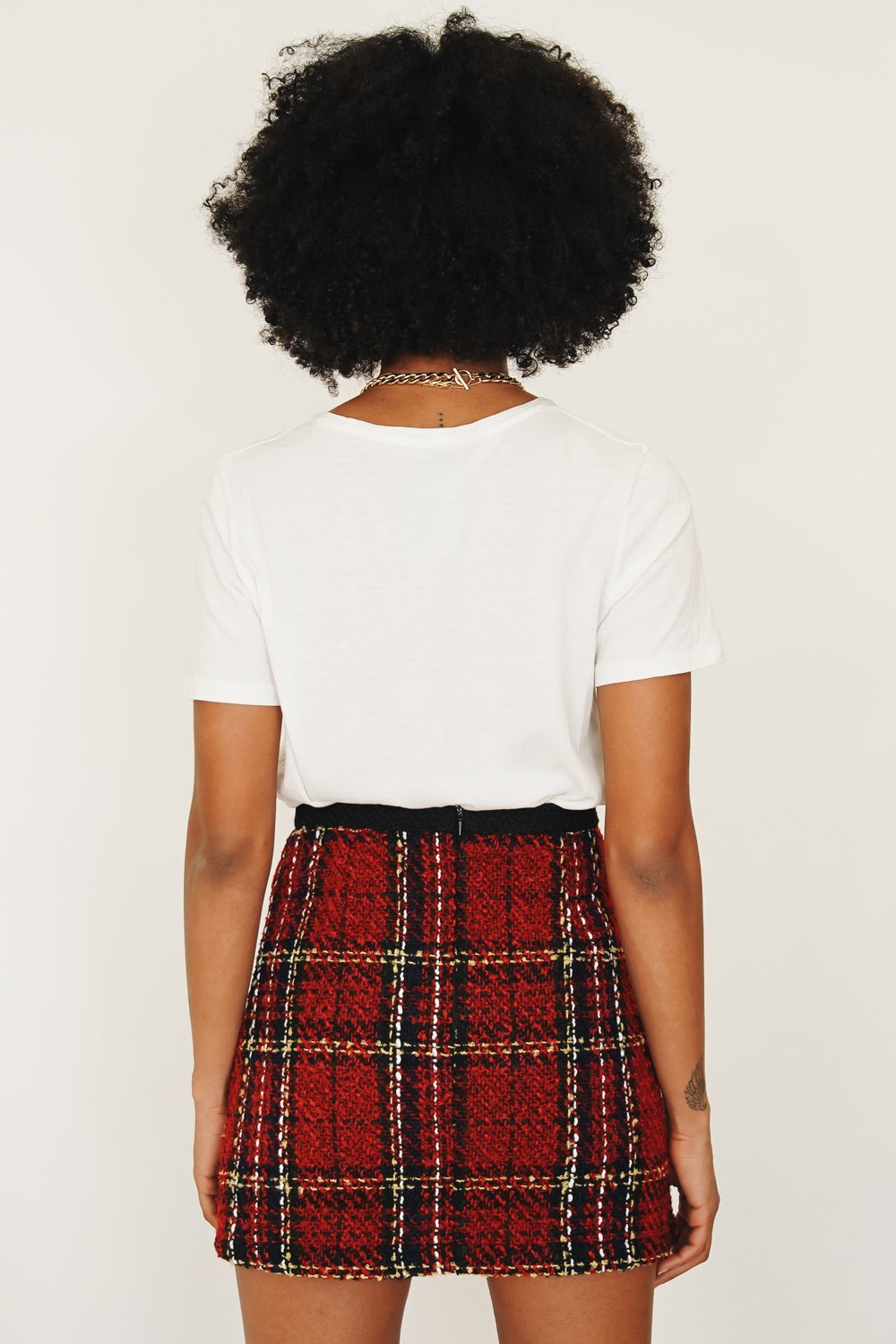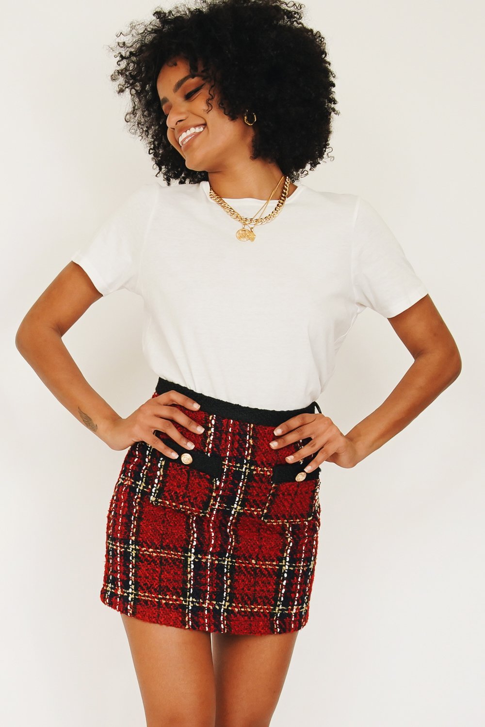 A New York Afternoon... Our Culture Classic Mini Skirt is giving us a total model off-duty vibes, featuring gold button detailing & front pockets - We're wearing this number with our matching jacket, tie up mules & layered gold accessories!
