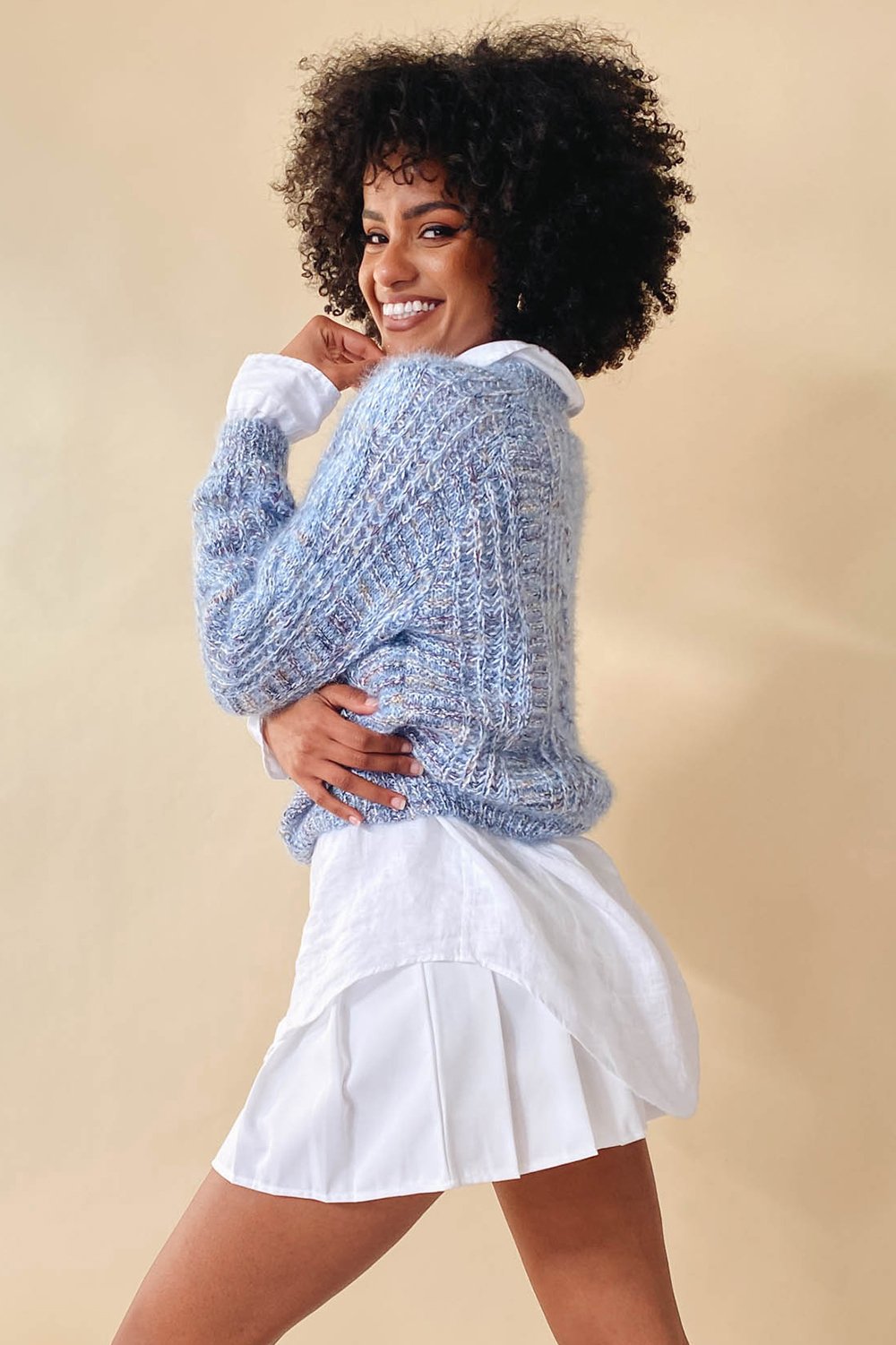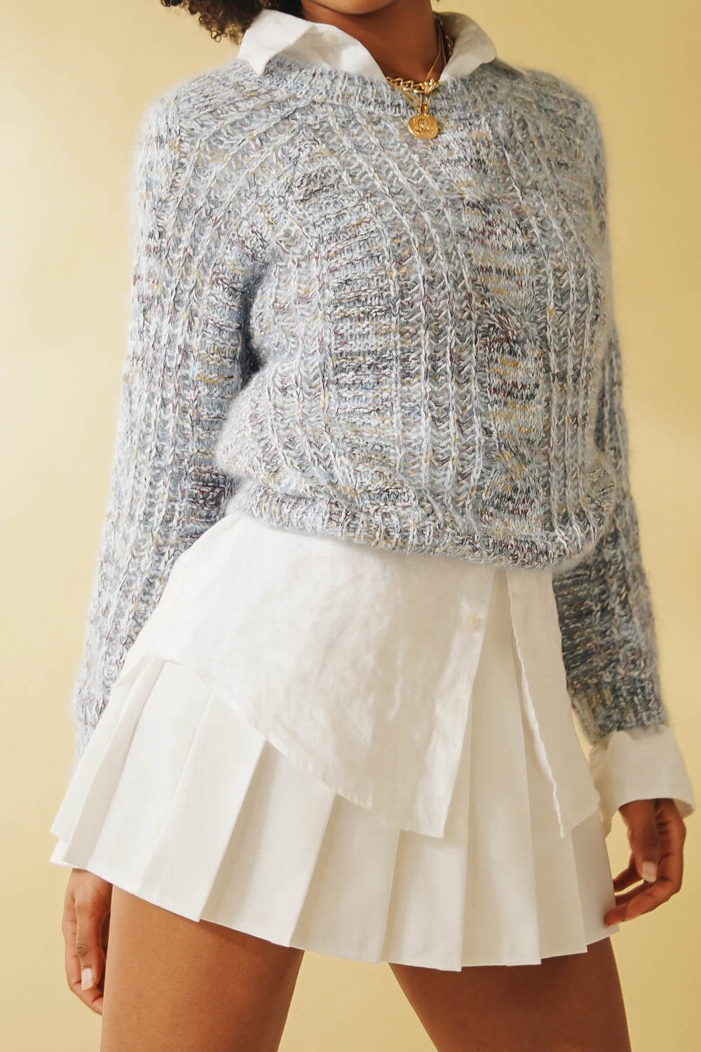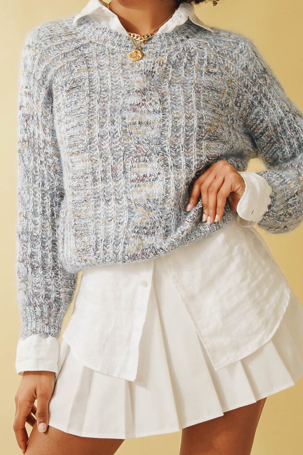 For slow mornings, coffee in bed & treats from the bakery. Our Above The Clouds Knit features a speckle design & is made from a soft stretch knit. Wear with your fave vintage denim for a femme & chic feel!