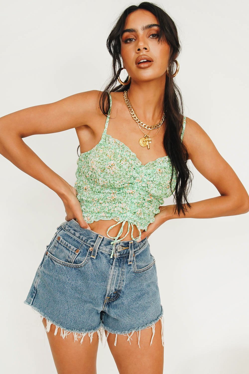 For A Femme Feel... Our Beauty Notes Top features an elastic ruched body & a centre front drawstring. This number looks so cool worn with your fave vintage denim & mules for a feminine cool look.