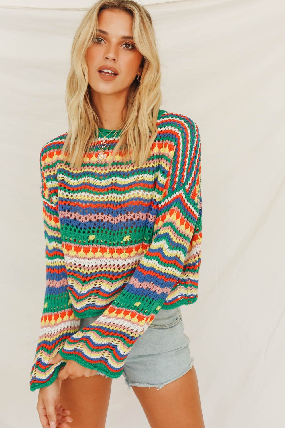 70's Vintage Vibes. Style this knit with your fave vintage denim shorts, strappy mules & gold hoops for a cool weekend look.