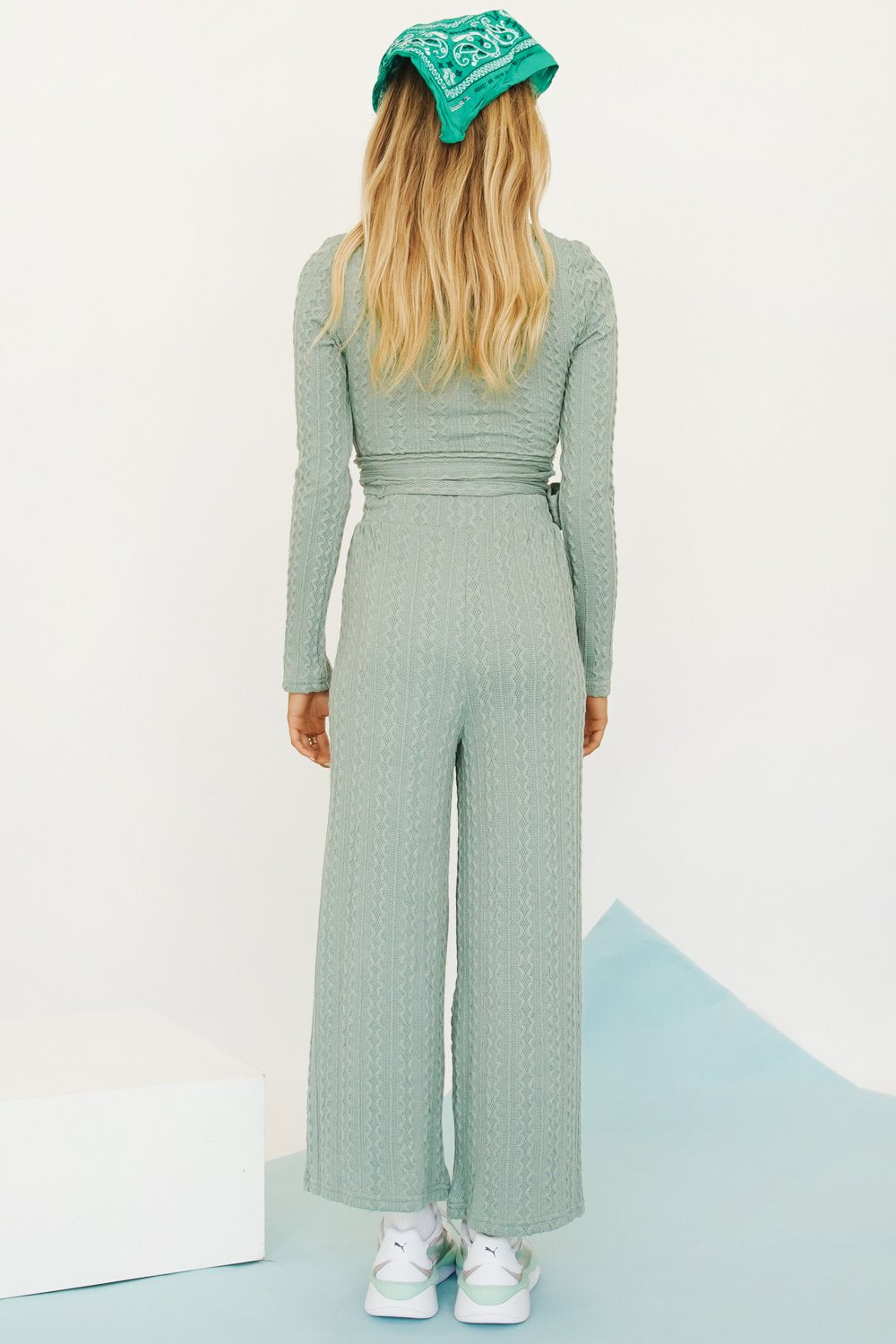 Perfect for chill days at home or for a total street style vibe, style this easy wear wrap top with our matching pants & layered gold accessories. Made from a stretch fabric, we know what we'll be lounging in! Also available in Tan.