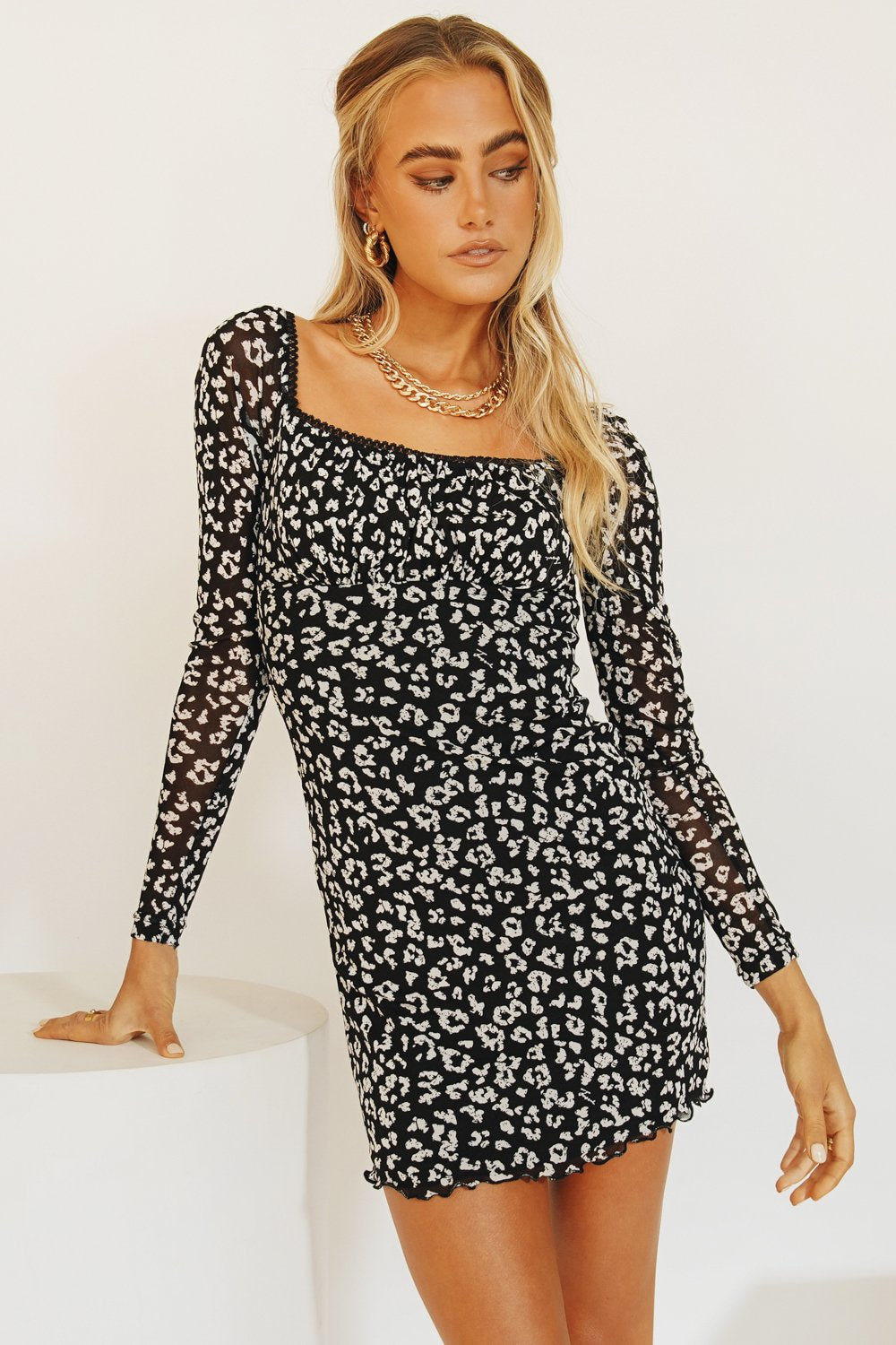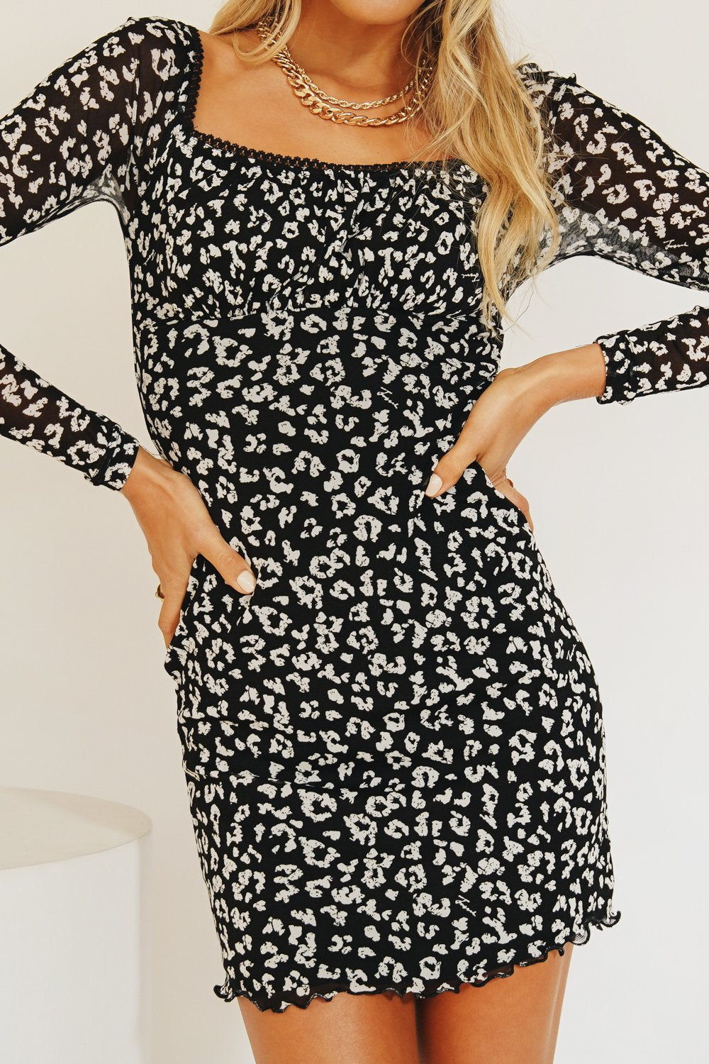 A mesh number worthy of a late night... We can't get enough of this mesh mini dress! Featuring lace trimming & full lining, it's so chic paired with your fave strappy mules for cocktails & dancing with the girls!