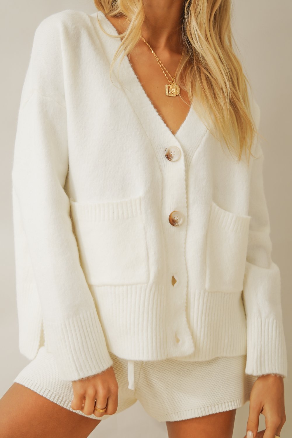 For slow mornings, coffee in bed & treats from the bakery. Our About You Knit Top features centre front buttons & pockets. Wear with your fave vintage denim for a femme & chic feel!