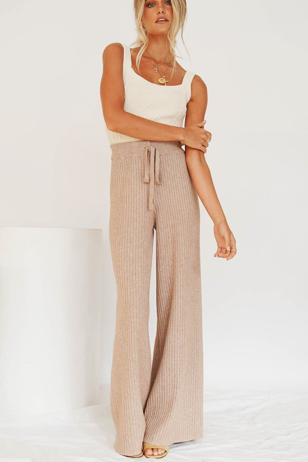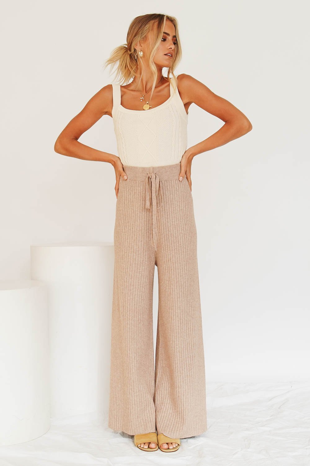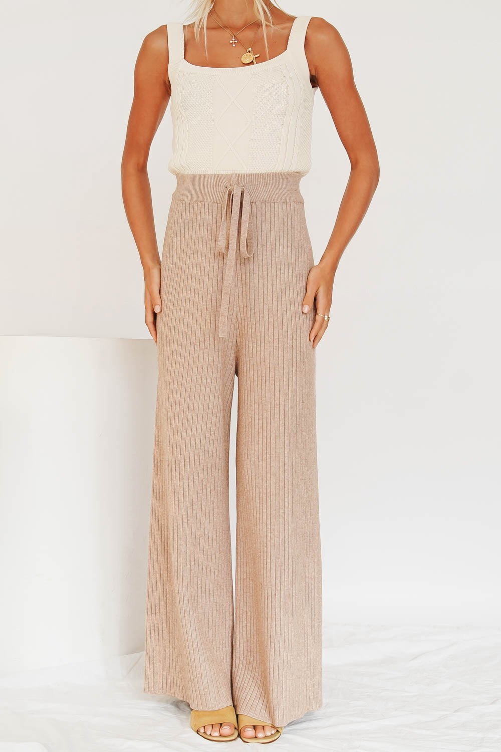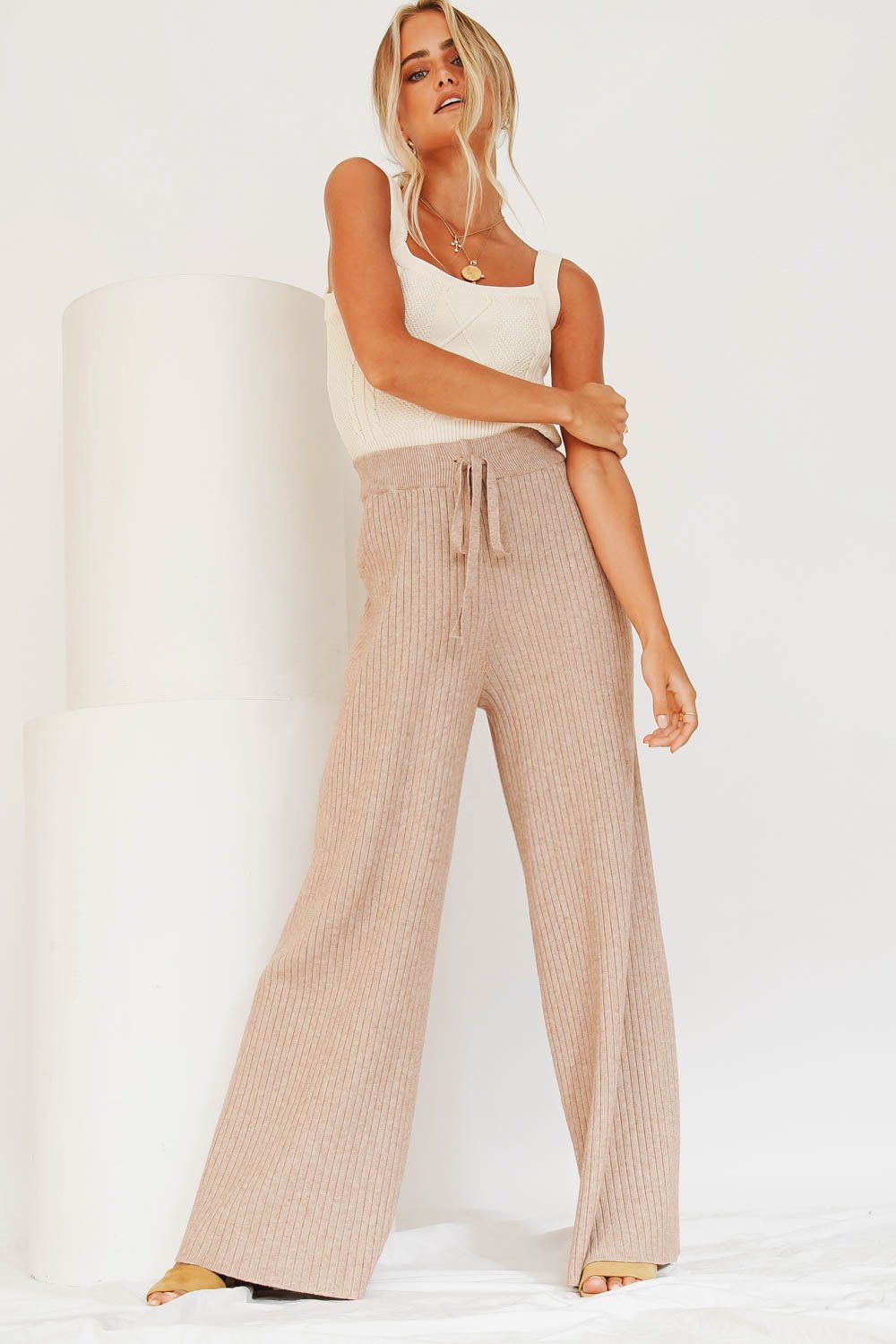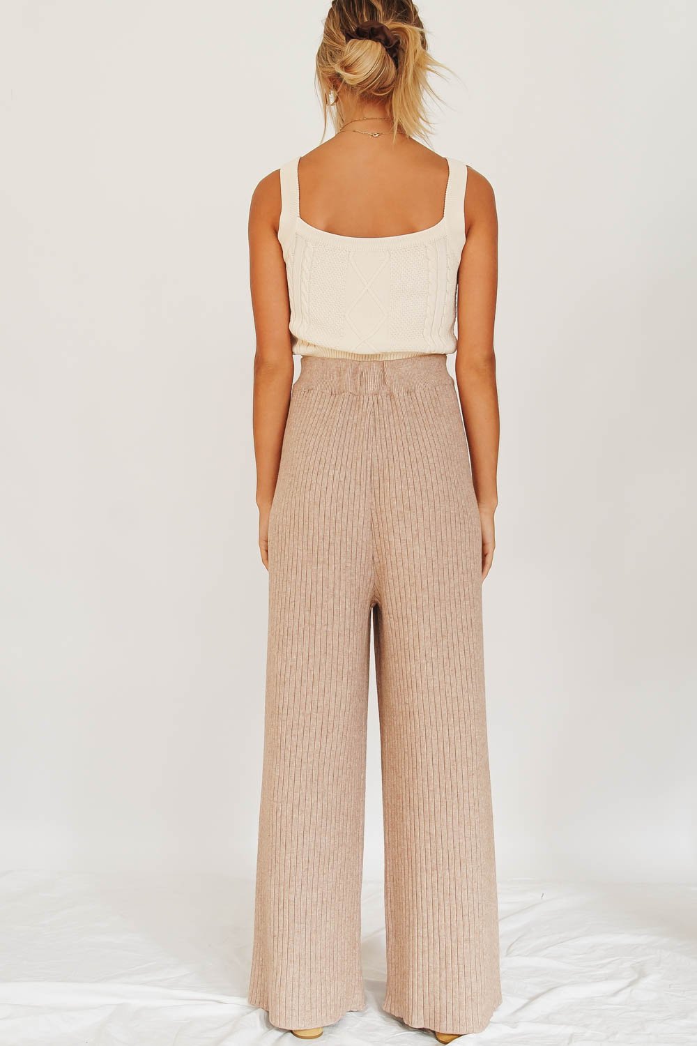 Slip into something a little more comfortable. Made from a ribbed knit fabric, these babies are the ultimate lounging pant, fitted with an elastic waist. Style with your fave vintage tee for an effortless look! Also available in Cream & Black.