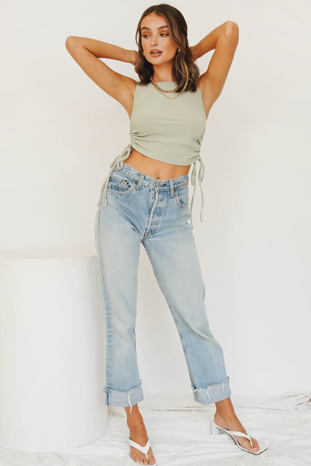 A not-so-basic, basic! This number features a soft ribbed fabric & looks so chic with the side drawstring details. Style with your fave vintage jeans, strappy mules & gold accessories for an effortless feel. Also available in Tan.