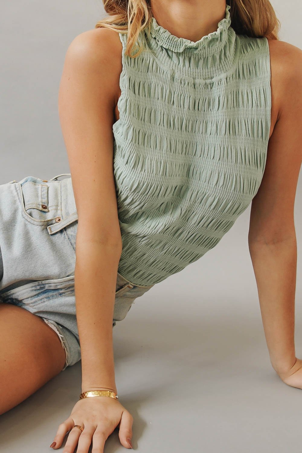 Turn heads in our By Your Side Top! This knit top features an elastic ruched body & is made from a soft stretch fabric. Pair with vintage denim & 90's style mules for a total cool girl vibe! Also available in Natural.