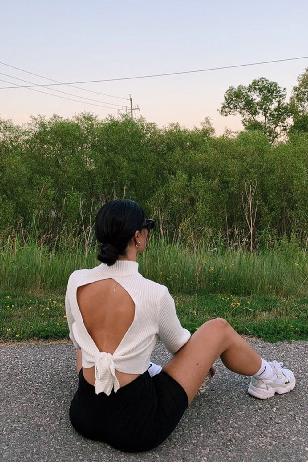 Feeling cool & chic. Wake up late & style this knit tie back number with vintage denim & your fave sneakers for a weekend on the go! Also available in White, Sky & Tan.