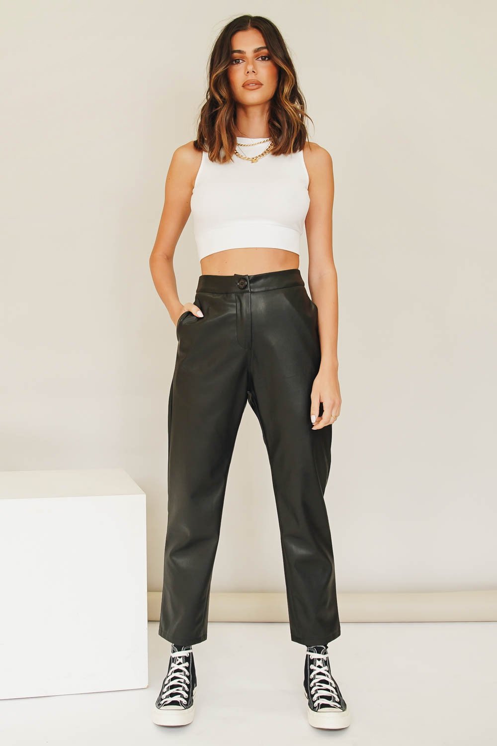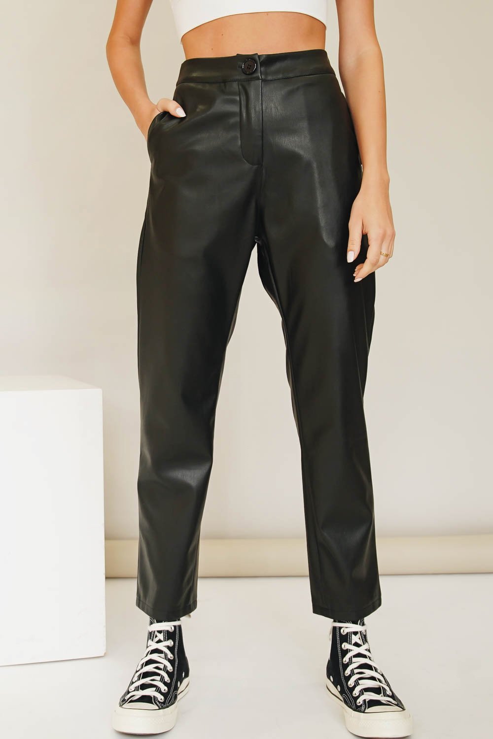 Think 90's party, late nights & sipping cocktails with the girls. Featuring a high waist, straight leg & a soft faux leather fabric, these pants will show off your best assets & are the perfect alternative to a mini dress on a night out! Also available in Tan.